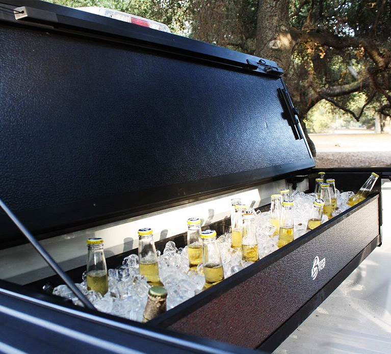 The BakBox 2 fits onto the rail of any BakFlip Tonneau Cover (this item will only work if you have a BAKFlip Tonneau Cover) in minutes and is ready for duty. Also included is a shifting tray that allows management of small items that can easily be slid out of the way. Add ice and it becomes a perfect beer or soda chest at the next sporting event!